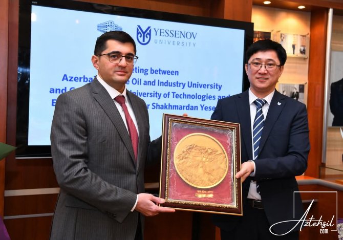 AzTehsil.com xəbər verir ki , bu gün Qazaxıstanın Ş.Yesenov adına Xəzər Texnologiya və Mühəndislik Universitetinin tədris işləri üzrə prorektoru Kayirbek Makulovun rəhbərlik etdiyi nümayəndə heyəti Azərbaycan Dövlət Neft və Sənaye Universitetinin (ADNSU) rektoru, dosent Rüfət Əzizovla görüşüblər.
