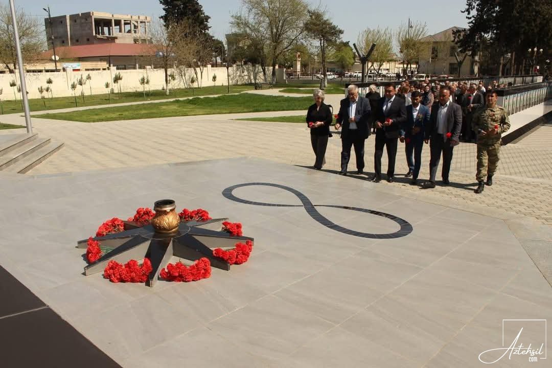Sonra kompleksin önünə gül dəstələri düzülərək şəhidlərin ruhlarına dualar oxunub.
