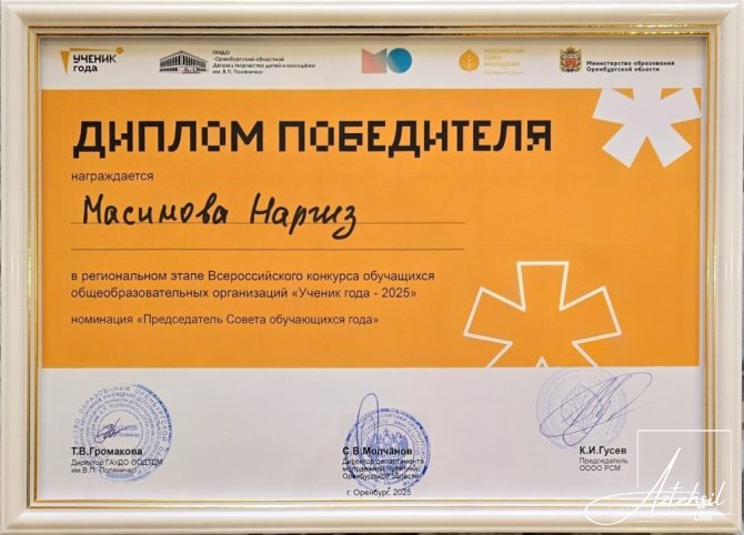Gərgin rəqabətdən sonra münsiflər heyəti tərəfindən müsabiqənin Ümumrusiya mərhələsinə keçəcək yeddi qalibi seçilib. Qaliblər arasında “Tələbə Şurasının sədri” nominasiyası üzrə “İlin şagirdi – 2025” adını qazanmış “Saqarçinski tam orta məktəbi” bələdiyyə büdcə təhsil müəssisəsinin 10-cu sinif şagirdi Nərgiz Məsimova da var.