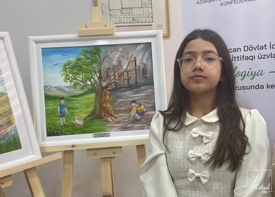 Qeyd edək ki, müsabiqəyə 300-dən çox uşağın çəkdiyi rəsmlər təqdim edilib. Seçilən 70 rəsmdən 9-u qalib elan olunub. Üç nominasiya üzrə isə 9 nəfər həvəsləndirici mükafata layiq görülüb. Məhz həmin Məktəb-liseyin V sinif şagirdi Nəbizadə Nurcan Orxan qızı “Ekologiya mənim fırçamda” rəsm müsabiqəsində I yerə layiq görülmüşdür. ![]()