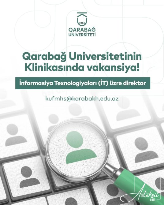 Qarabağ Universitetinin Klinikası İnformasiya Texnologiyaları (İT) üzrə direktor vakansiyası elan edir.