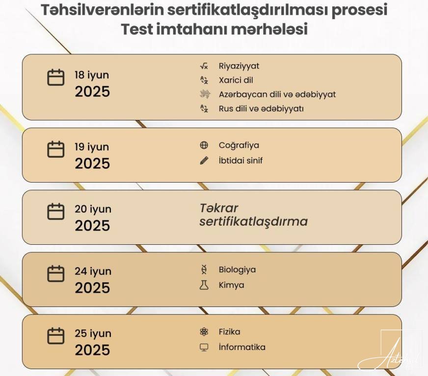 Bu il sertifikatlaşdırma imtahanları 25 iyunda yekunlaşacaq.