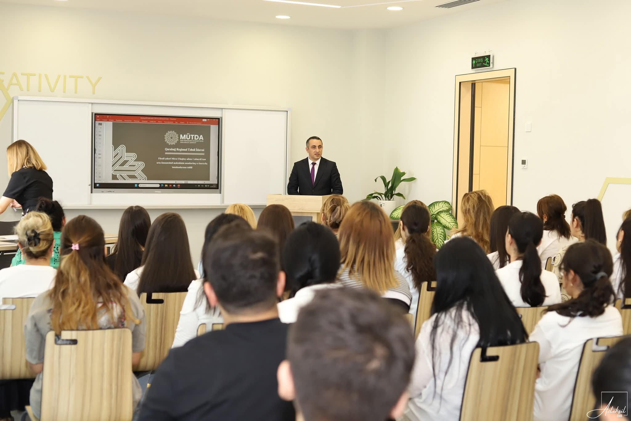 Qarabağ Regional Təhsil İdarəsinin müdiri Sənan Mənsimli Füzuli şəhəri Mirzə Uluqbəy adına 1 nömrəli tam orta məktəbdə olarkən yuxarı sinif şagirdlərinin valideynləri və müəllimlərlə görüş keçirib.