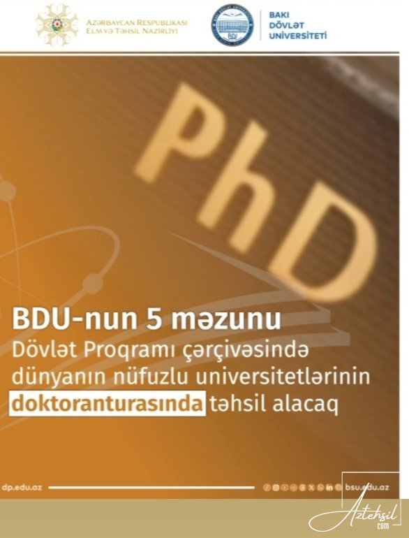 Bakı Dövlət Universitetinin (BDU) 5 məzunu “Gənclərin xarici ölkələrin nüfuzlu ali təhsil müəssisələrində təhsil almalarına dair 2022-2028-ci illər üçün Dövlət Proqramı” çərçivəsində 2025/2026-cı tədris ili üçün dünyanın nüfuzlu universitetlərinin doktoranturasında təhsil alacaq.
