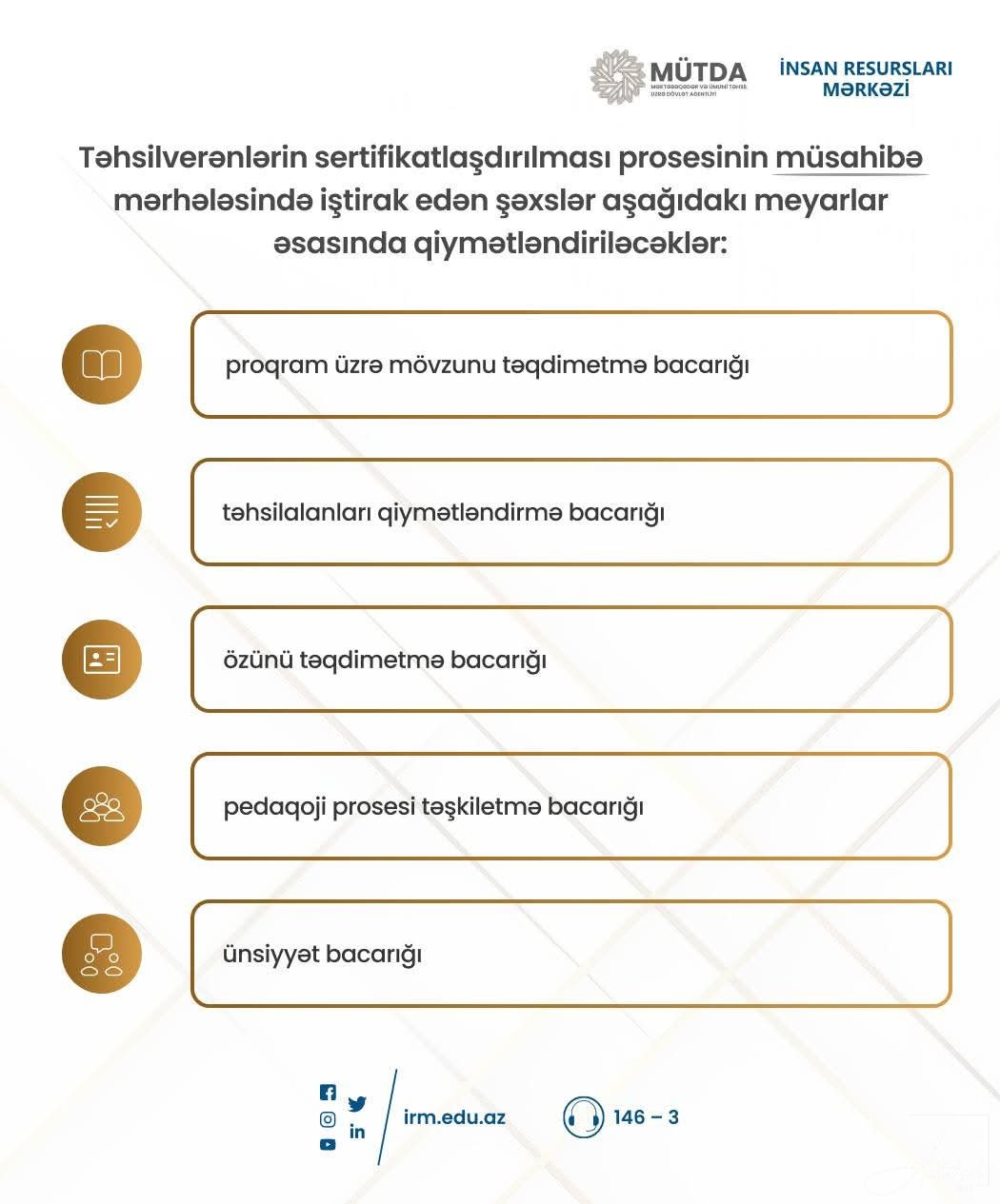 Qeyd edək ki, sertifikatlaşdırmanın müsahibə mərhələsində azı 20 bal toplamış təhsilverənlər həmin mərhələdən keçmiş hesab edilirlər.