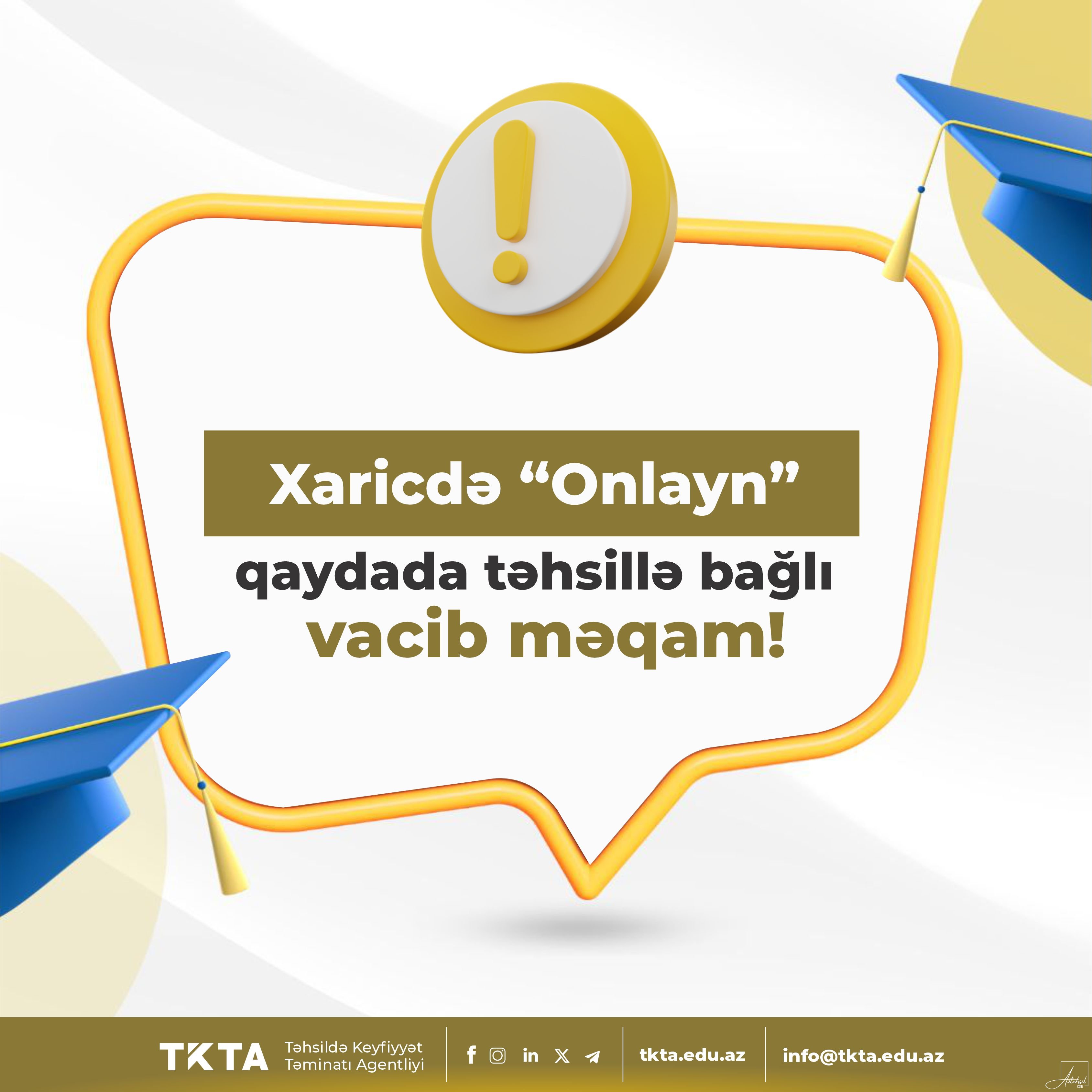 Bəzi kütləvi informasiya vasitələrində, xaricdə təhsil şirkətlərinin müvafiq elanlarında və özünü təhsil "ekspertləri" kimi təqdim edən şəxslərin paylaşımlarında vətəndaşlarımız, xarici ölkələrdə yerləşən universitetlərə getmədən qiyabi və əyani təhsilalma formaları üzrə “onlayn” qaydada təhsil almağa təşviq olunur və sonda diplomların tanınacağı vədi verilir.