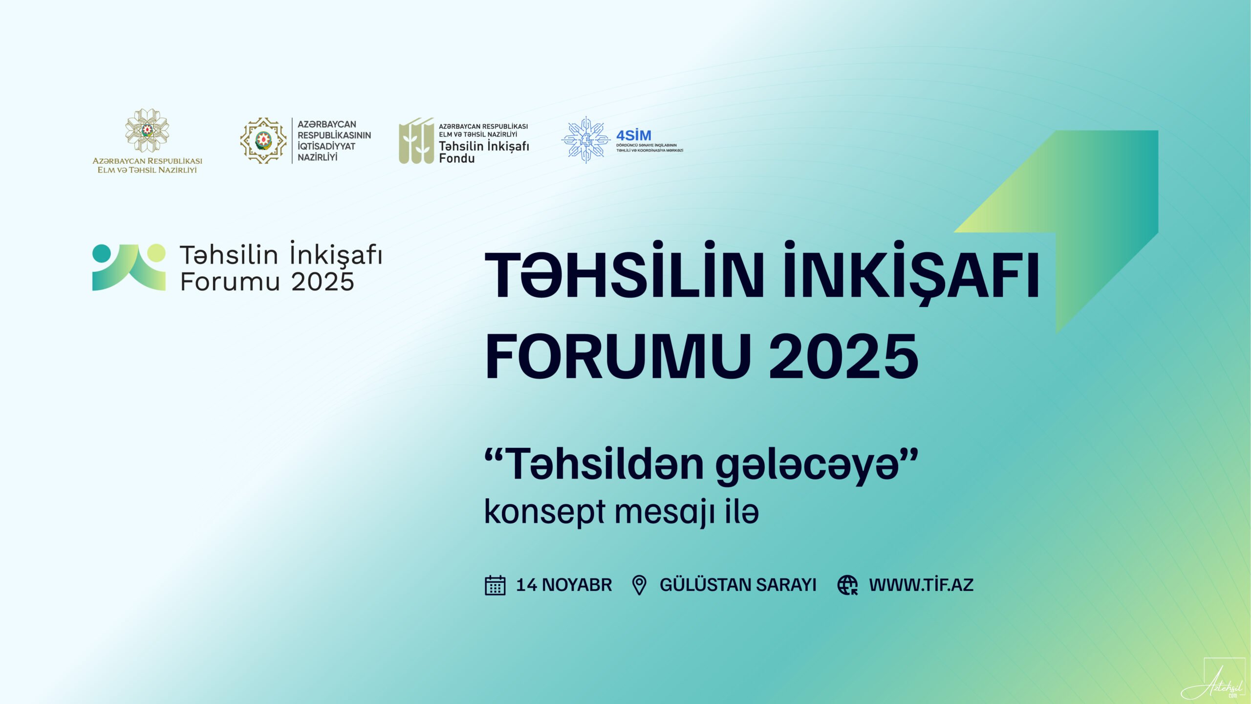14 noyabr 2025-ci ildə “Təhsilin İnkişafı Forumu 2025” baş tutacaq. Forum Azərbaycan Respublikası Elm və Təhsil Nazirliyi, İqtisadiyyat Nazirliyi, Təhsilin İnkişafı Fondu və Dördüncü Sənaye İnqilabının Təhlili və Koordinasiya Mərkəzinin (4SİM) birgə təşkilatçılığı ilə keçiriləcək.