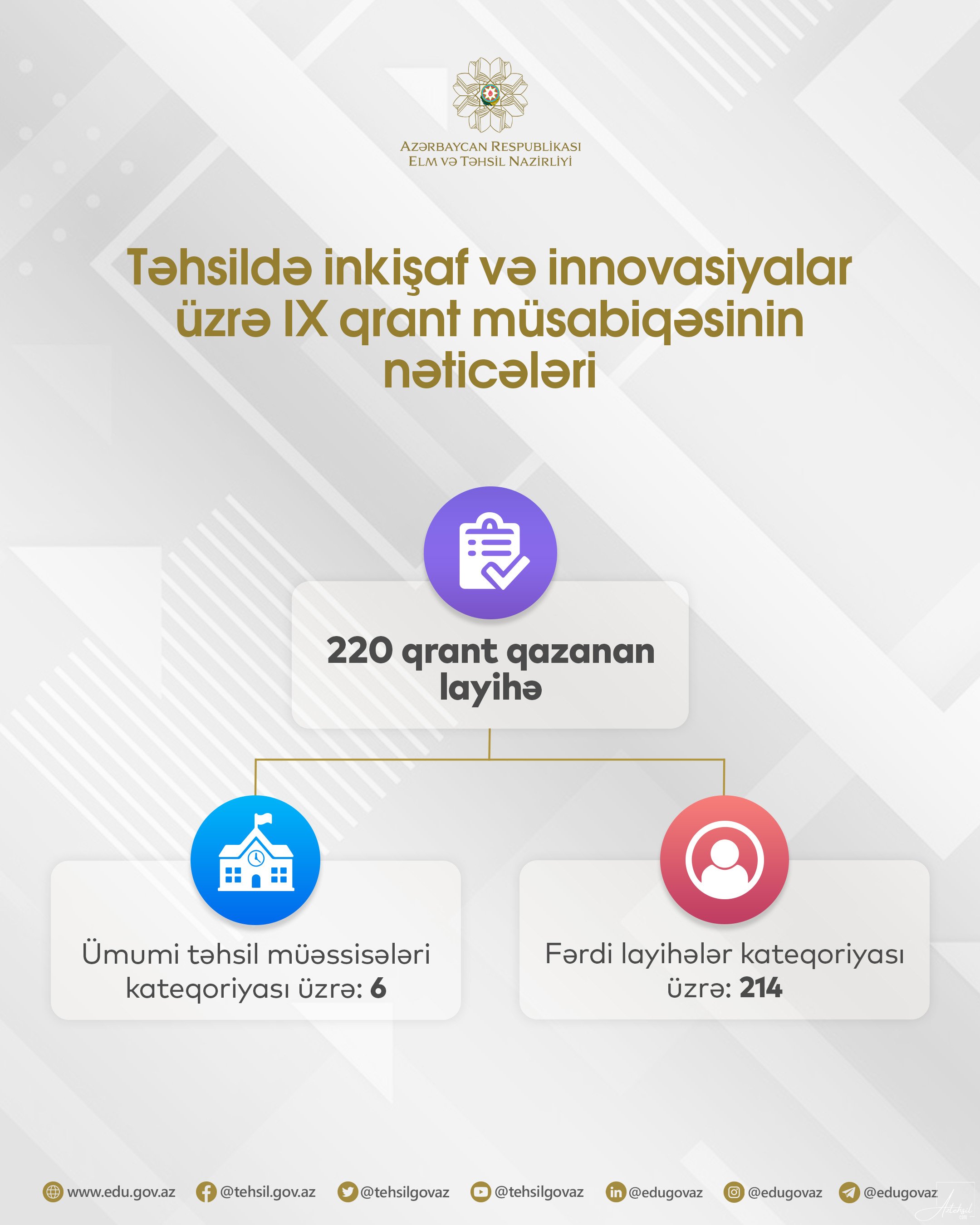 Təhsildə inkişaf və innovasiyalar üzrə IX qrant müsabiqəsinin nəticələri elan olunub.