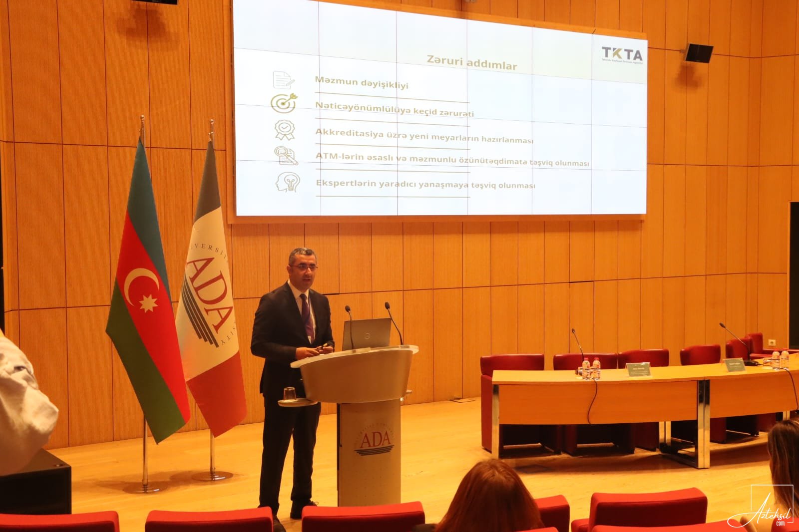 Giriş sözü ilə çıxış edən ADA Universitetinin prorektoru Elkin Nurməmmədov son illərdə ölkəmizdə təhsildə keyfiyyət təminatı və akkreditasiya sahəsində ciddi irəliləyişlərə nail olunduğunu bildirərək bu baxımdan tədbirin əhəmiyyətini yüksək qiymətləndirib. Daha sonra TKTA-nın İdarə Heyətinin sədri Tural Əhmədov TKTA-nın fəaliyyəti çərçivəsində institusional və proqram akkreditasiya qiymətləndirilməsindən irəli gələn çağırışlar və gözləntilərə dair təqdimat edib.