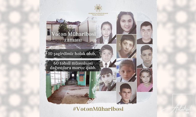 Həmçinin, müharibə zamanı 10 şagirdimiz həyatını itirib, 60 təhsil müəssisəsi isə dağıntılara məruz qalıb.![]()
