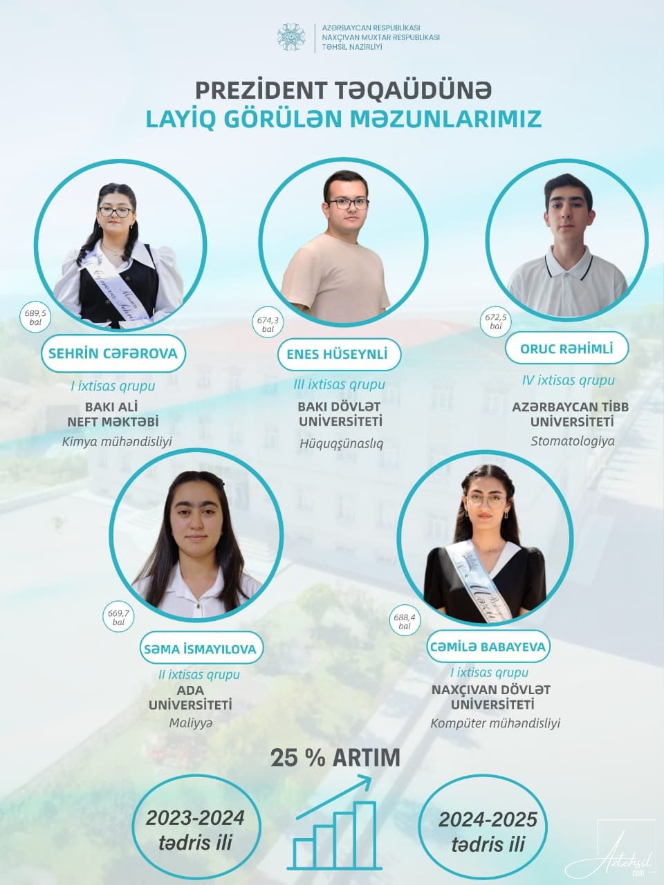 Naxçıvanın 5 məzunu Prezident təqaüdünə layiq görülüb