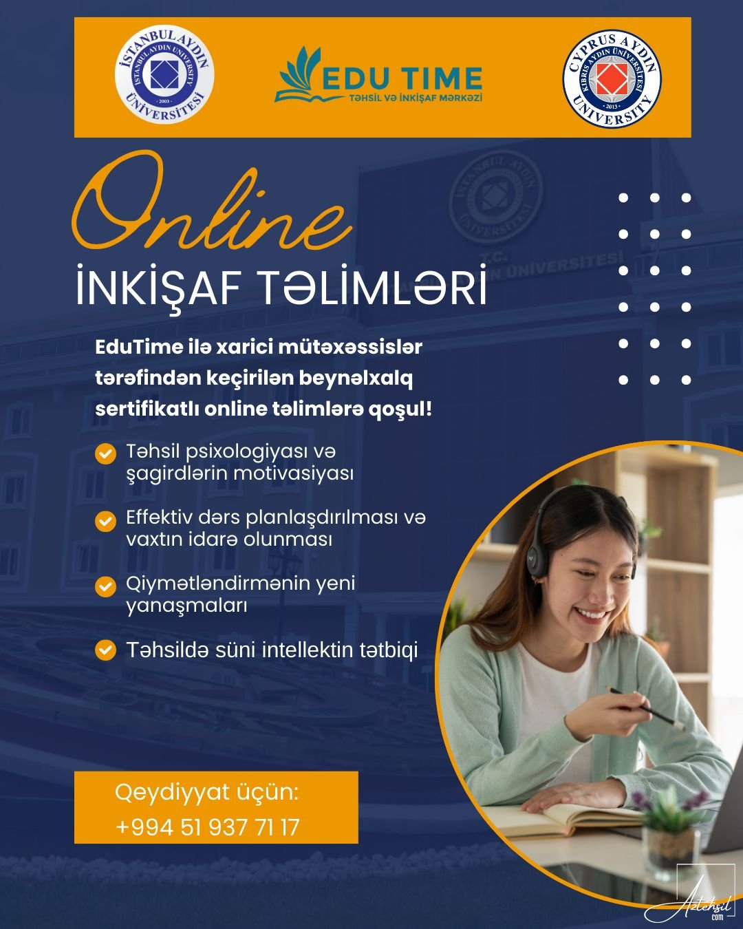 AzTehsil.com xəbər verir ki, EduTime Təhsil və İnkişaf Mərkəzi beynəlxalq tərəfdaşlarla birgə müəllimlər üçün peşəkar inkişaf təlimləri təşkil edir!