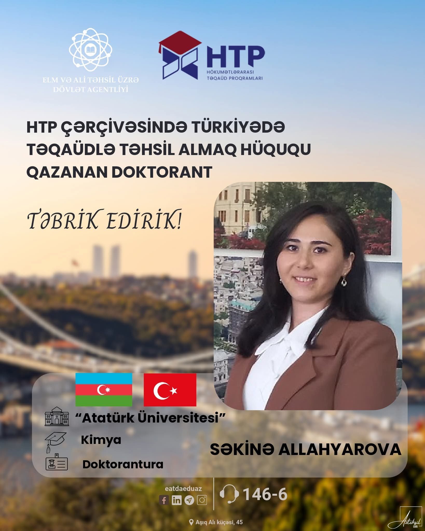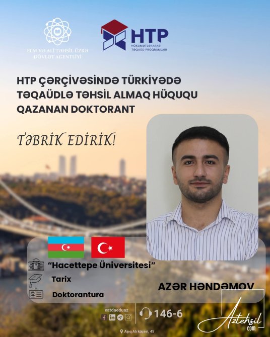 AzTehsil.com xəbər verir ki, Türkiyə tərəfindən verilən yekun qərar nəticəsində 11 Azərbaycan Respublikası vətəndaşı 2025-2026-cı tədris ili üzrə sözügedən ölkənin nüfuzlu universitetlərində doktorantura və postdoktorantura səviyyəsində təhsil almaq imkanı qazanıb.