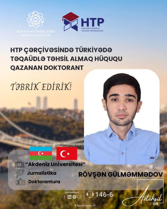 Hökumətlərarası Təqaüd Proqramları (HTP) çərçivəsində 2025-2026-cı tədris ili üzrə Türkiyə Respublikasında təhsil almaq hüququ əldə etmiş tələbələri yaxından tanımaq məqsədilə hazırlanmış fotoalbomu diqqətinizə çatdırırıq.