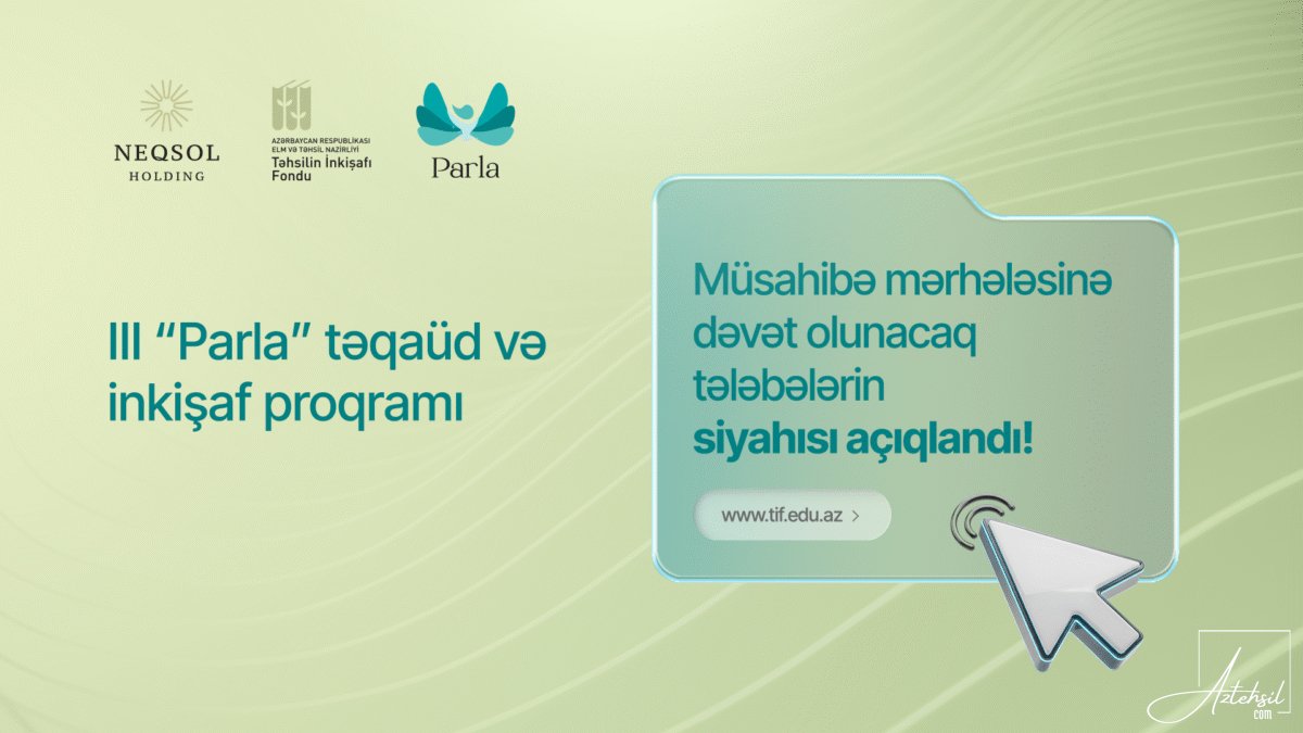 Təhsilin İnkişafı Fondu və “NEQSOL Holding”in birgə əməkdaşlığı çərçivəsində icra olunan “Parla” təqaüd və inkişaf proqramı üzrə müsahibə mərhələsinə dəvət olunacaq namizəd qızların siyahısı açıqlanıb.