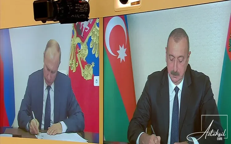 AzTehsil.com xəbər verir ki, noyabrın 10-da Azərbaycan Prezidenti İlham Əliyev, Ermənistanın Baş naziri Nikol Paşinyan və Rusiya Prezidenti Vladimir Putin münaqişə zonasında atəşin və bütün hərbi əməliyyatların tam dayandırılması barədə bəyanat imzalayıblar. Bununla da Ermənistan-Azərbaycan Dağlıq Qarabağ münaqişəsinə son qoyulub. Bəyanata əsasən, Ağdam, Kəlbəcər və Laçın rayonları sülh yolu ilə Azərbaycana qaytarılıb.