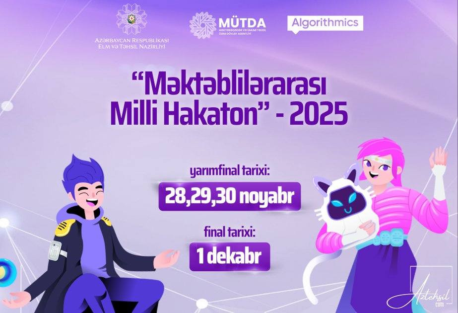 Elm və Təhsil Nazirliyinin dəstəyi ilə həyata keçirilən “Məktəblilərarası Milli Hakaton – 2025” layihəsinin yarımfinal və final mərhələlərinin tarixləri müəyyənləşib.