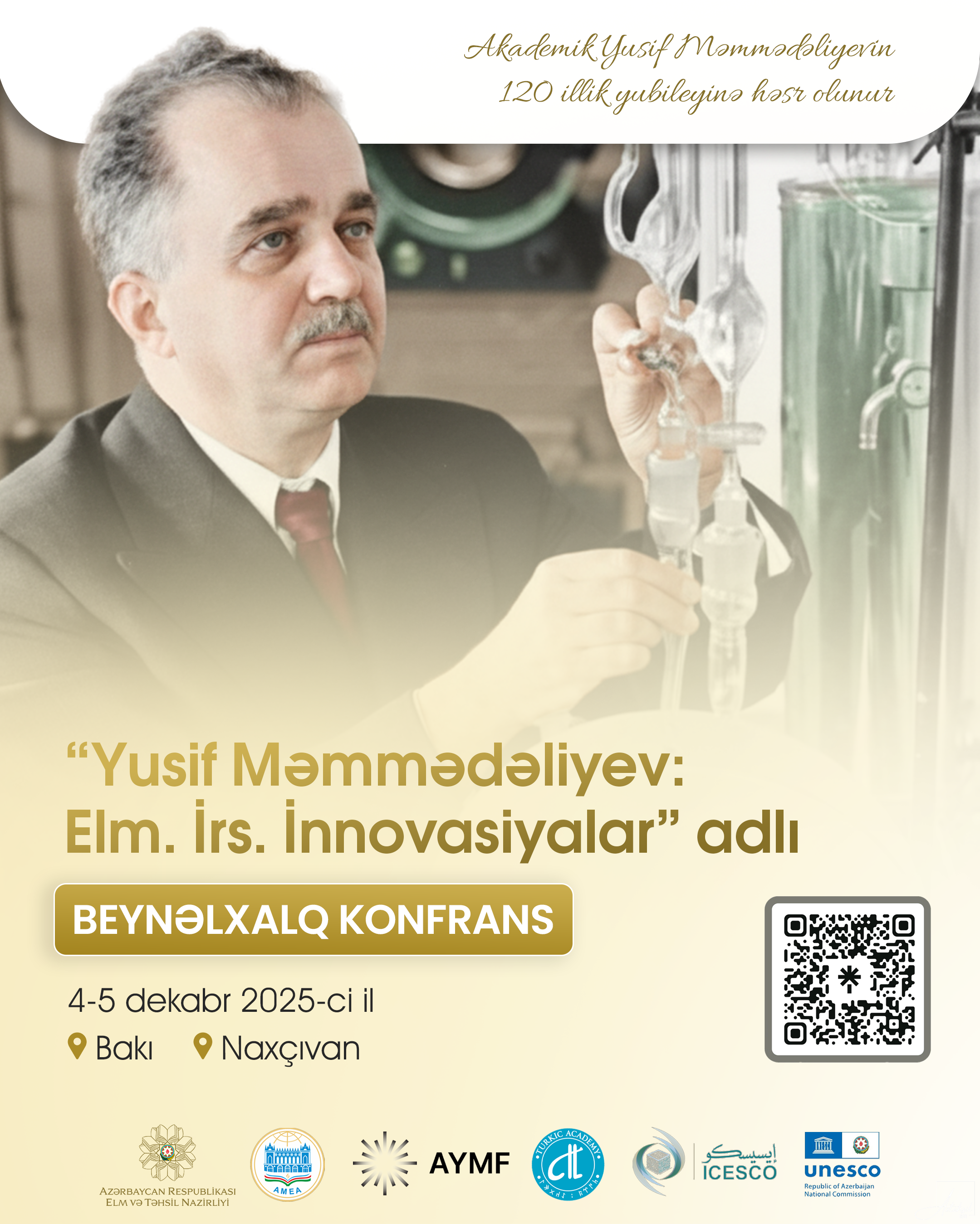 AzTehsil.com xəbər verir ki, 4–5 dekabr 2025-ci il tarixlərində akademik Yusif Məmmədəliyevin 120 illik yubileyinə həsr olunan “Yusif Məmmədəliyev: Elm. İrs. İnnovasiyalar” adlı beynəlxalq konfrans (https://aymconference.com/) keçiriləcək.